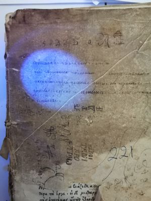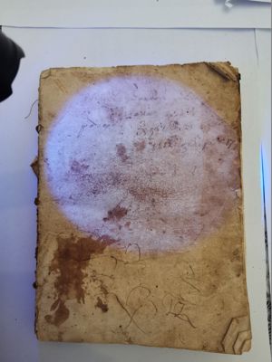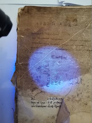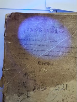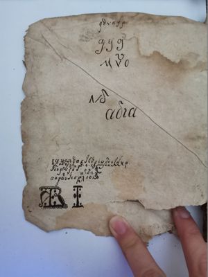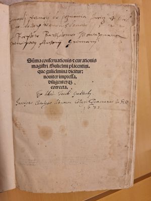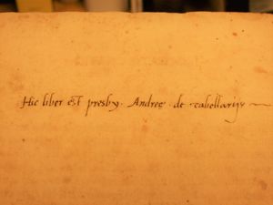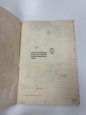 The book is part of the collection Vikelas left to the Heraklion Municipal Library, as evidenced by the old manuscript Library Catalogue (n. 2618). Library stamp with the n. 2618 written by hand. Library shelfmark (0331.1F) written in blue ink on the upper right corner of the first leaf.