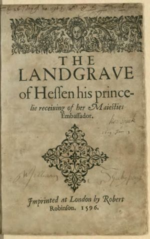 The Landgrave of Hessen his princelie receiuing of her Maiesties embassador