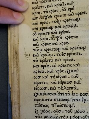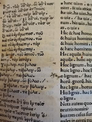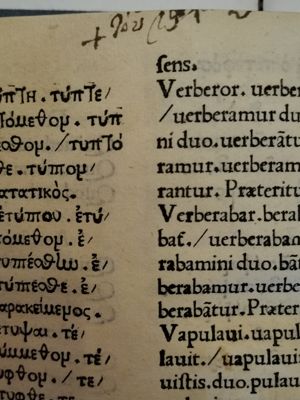 Lexicon Graeco-latinum. Add: Pseudo- Cyrillus [Johannes Philoponus]: Collectio vocum quae variato accentu mutant significationem. Ammonius: De differentia adfinium vocabulorum. Vetus instructio praefectorum militum. With other grammatical tracts, and verses by Scipio Fortiguerra and Marcus Musurus [Greek and Latin]