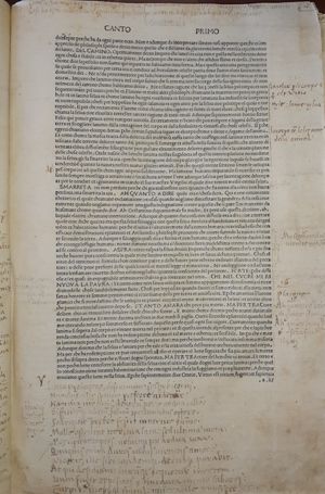 Trascrizione di un epigramma attribuito a Virgilio e commento; note marginali di un'altra mano.