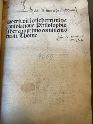 De consolatione philosophiae. Comm: Pseudo- Thomas Aquinas. Add: Compendiosa consolationis resumptio