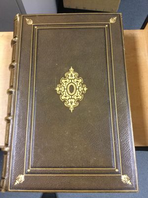 The volume was probably bound for Gosuinus Uilenbroek (see: Jan Storm van Leewen, "Dutch Decorated Bookbinding in the Eighteenth Century", vol. I, p. 326): 18th century, black Morocco leather, gold tooling on boards and spine, red leather onlay on spine with gold tooled titling, marbled edges.