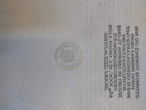 La Commedia (Comm: Christophorus Landinus). Add: Marsilius Ficinus: Ad Dantem gratulatio [Latin & Italian]