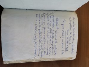 White cover (parchment?) over paper boards. Later blue paper pasted over covers (not spine). On the front cover, round label, probably with an old shelfmark. Above it, label with "12/9/9" written with blue pen. On the front cover, the book's information written with blue pen: "Augustinus de Ancona de Ecclesiastica potestate, 20 - Dec - 1479". On the spine, in brown ink, manuscript titling: "Fr. Aug. de Ancona Summa De Potestate Ecclesiastica".