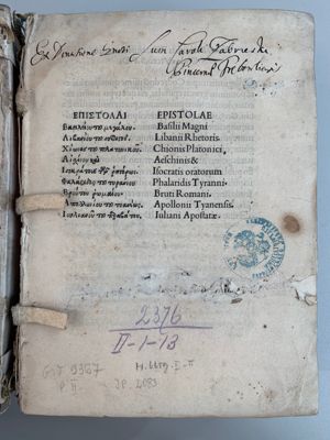 Epistolae diversorum philosophorum, oratorum, rhetorum [Greek]. Ed: Marcus Musurus