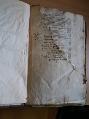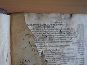 Library stamp (round, blue ink) with the symbol of the Hellenic Republic and inscription "ΔΗΜΟΣΙΑ ΒΙΒΛΙΟΘΗΚΗ ΚΕΡΚΥΡΑΣ" on the first flyleaf, on Α1v and on [*]8 under the colophon. Rectangular stamp with "Αρ. Εισ." and the accession number "12936" filled in by hand on the front pastedown.